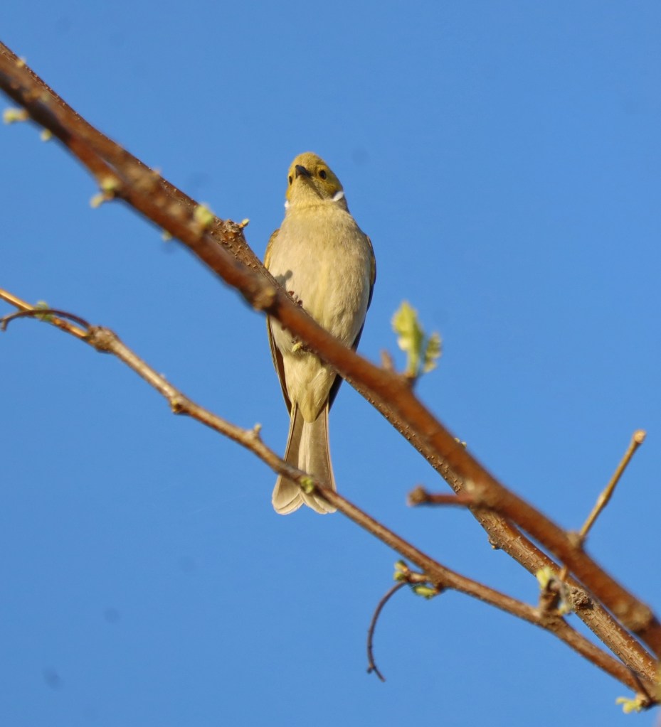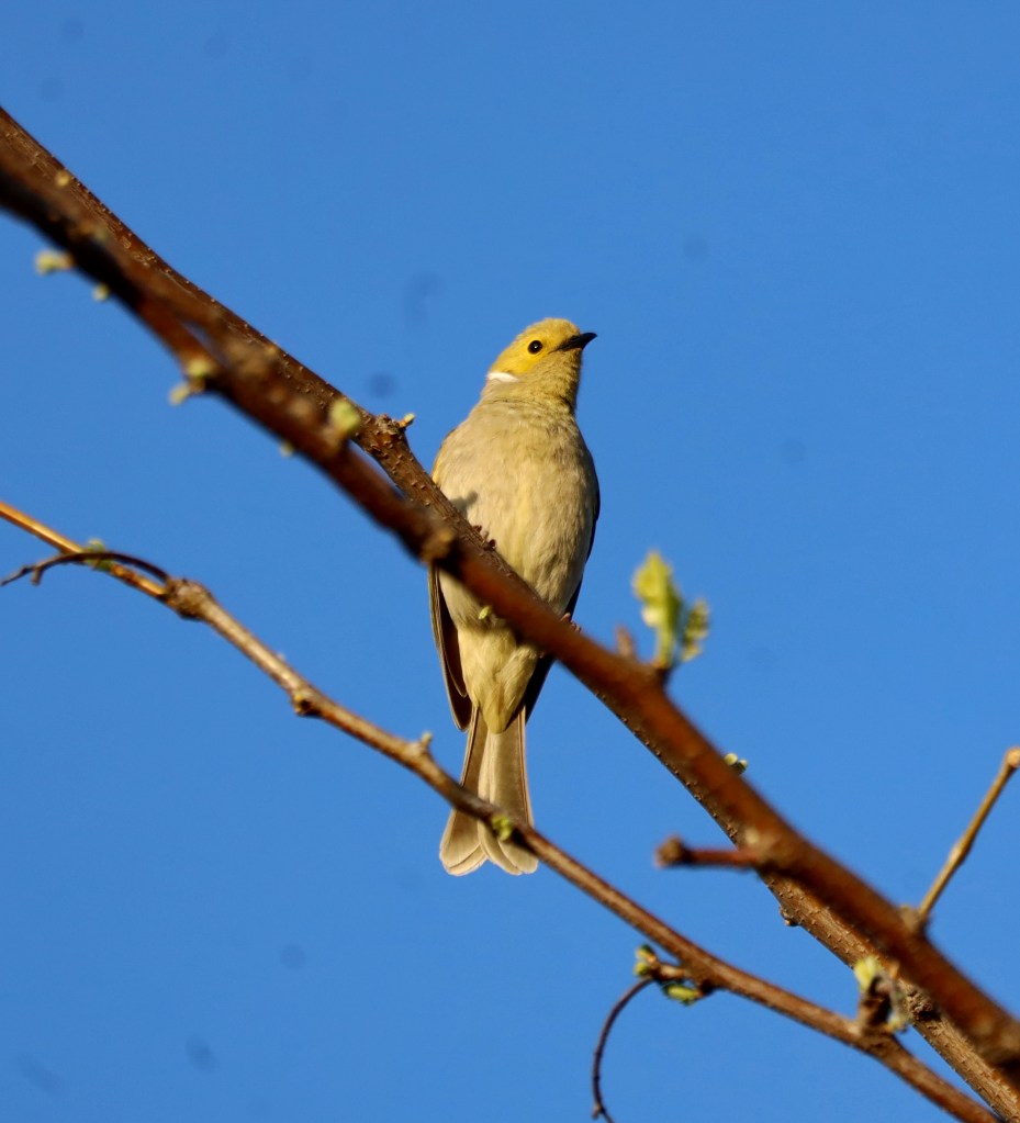 The tiny White-plumed Honeyeater are also present high in the blossom of the trees. This honeyeater is the main honeyeater found west of the ranges in the dryer regions of the west.