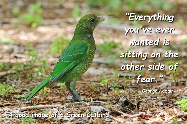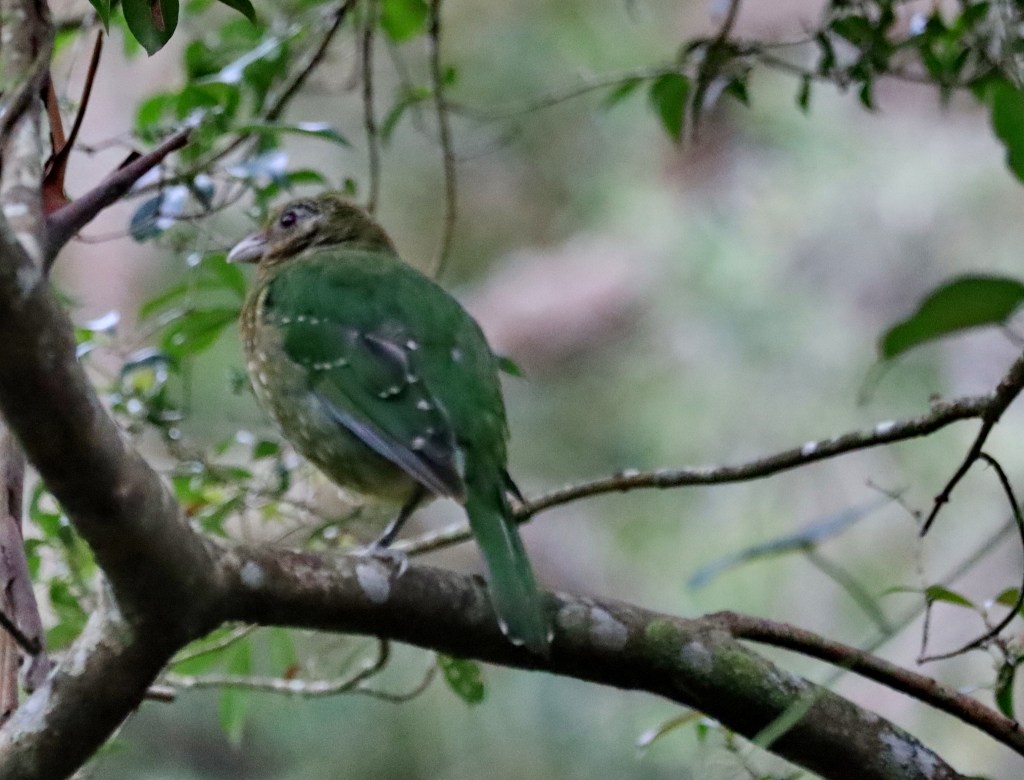 • Thanks David, yes the green is quite dense and almost looks like a plastic coat. They are very sneaky birds to locate as they perch very still and peer out of the sub canopy at you. They see you but you not them easily. They have an interesting mating ritual which I did not go into detail over concerning food gifts and a stage which allows the right amount of light through which the male decorates with fruit and flowers. It does vary considerably depending on available resources. So sad to hear about Little Desert, we loved being at the park. I wonder of the lodge survived ? they were lovely people and made us quite welcome. I noticed you have tried commenting two different ways. This one is your usual but you did try another one with same comment. Should I approve the other, are you changing email addresses ? The cacophony of Cicadas have driven our birds away as well as heat and erratic weather also. Not a good birding season so far. Enjoy the rest of your week.