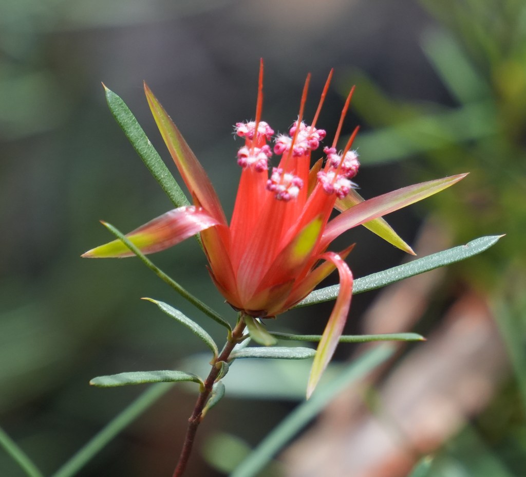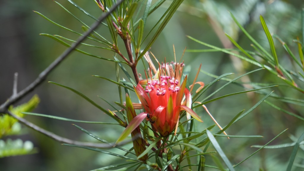 Eastern Spinebill with Mountain Devil flower