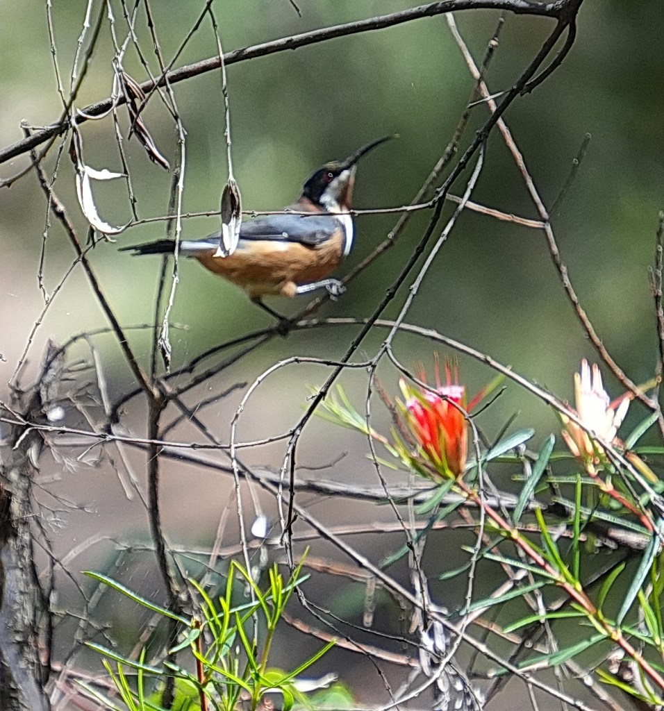 • Thanks Deborah, yes we love these birds, the Robin is always a delight to see, especially how it sits and checks us out as it clings to trees, waiting for us to walk so it can follow us down the track hoping to pounce on insects we may disturb. The Spinebill is often difficult to photograph as it never stays still enough, and is often gone by the time it sees us.