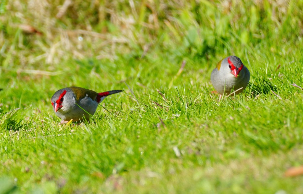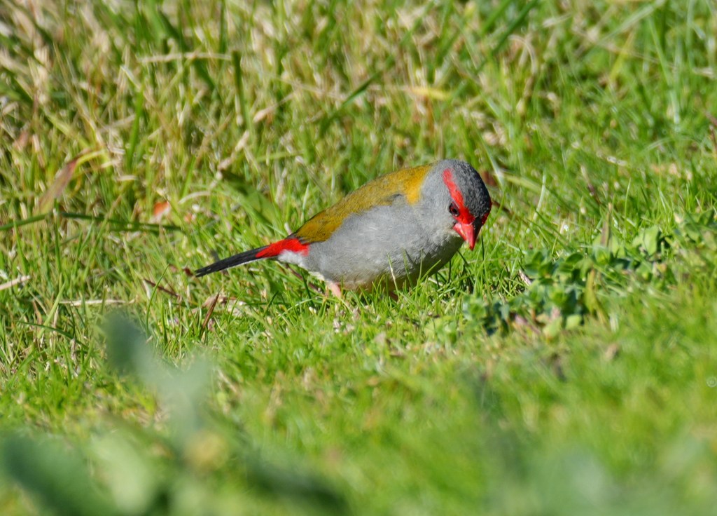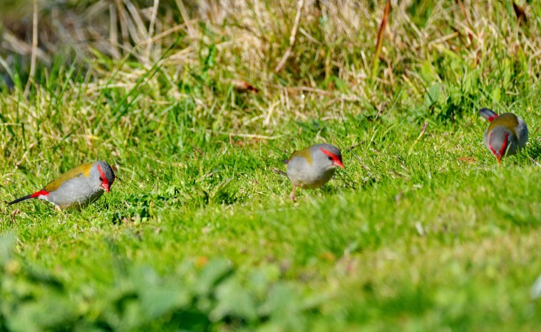We climbed the sundial hill in hope of finding the Scarlet Robin pair we saw last time we visited, but they had also left, though we did see several other birds including these Red-browed Finches and as my friend rightly noted these are also a member of our Firetail family, though they are all actually Finches of which we have many species. This name comes from the bright red base of their tale. Finches are grass seed eaters and spend much of their time on our extensive savanna and open grassland paddocks, especially this time of year when the summer grasses seed during winter months.