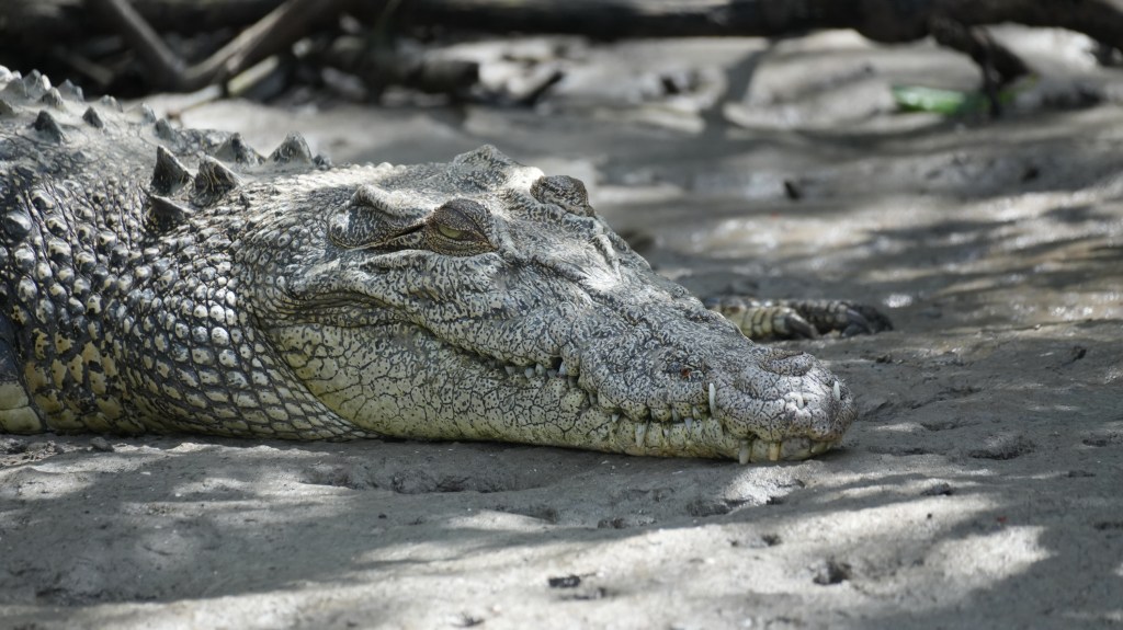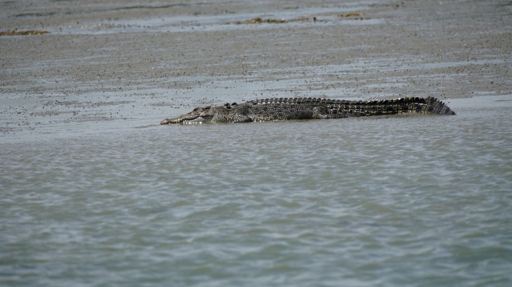 Here on our boat cruise along the river we observed many lazy salt water crocodiles resting also on sand bars, as well as many species of water bird. Thankfully Crocodiles only eat very infrequently, depending on the source up to a month or more due to their slow metabolism. They must remain near water to moderate their body temperatures as they are cold blooded. Click on images to enlarge.