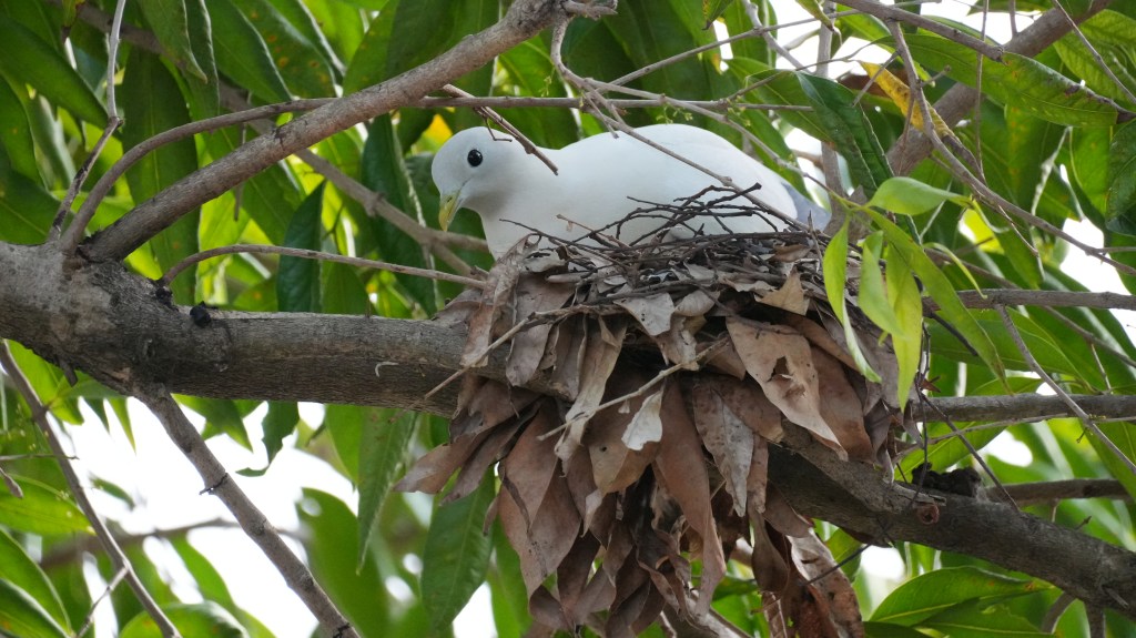 Lastly, an very important feature of our journey end when we stayed on Thursday Island in the Torres Strait just above Cape York, was to learn about the connection between the Teresian Imperial Pigeon (also known as the Torres Strait Pigeon) and the native Torres Strait islanders. The Teresian Imperial Pigeon is a beautiful bird found in all the islands including coastal mainland even in Cairns esplanade. These birds pair for life and are constantly affectionate to each other similar to species of Parrot and Cockatoo, helping to preen each other and give affectionate pecks.