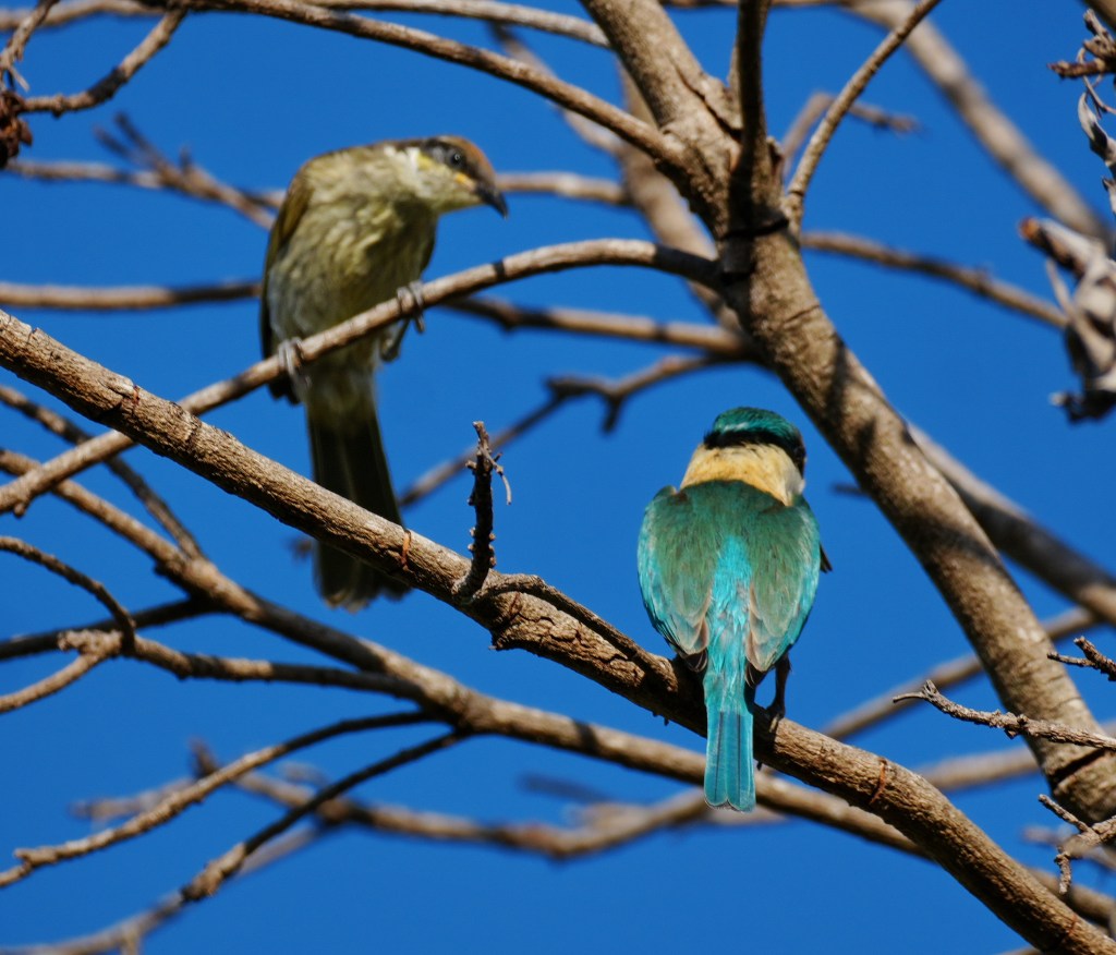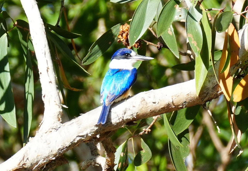 As well as the Sacred Kingfisher and Azure, we see more of the Forest Kingfisher in these parts. This species is found more in the forest woodlands and is not bound to water sources as much as the other species, feeding more on small reptiles, mice, worms and insects. It has more blue rather than green and white lores and chest.