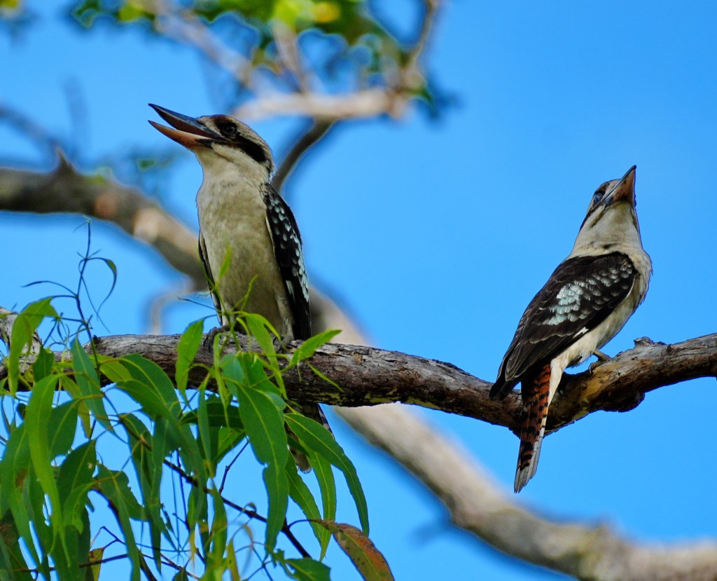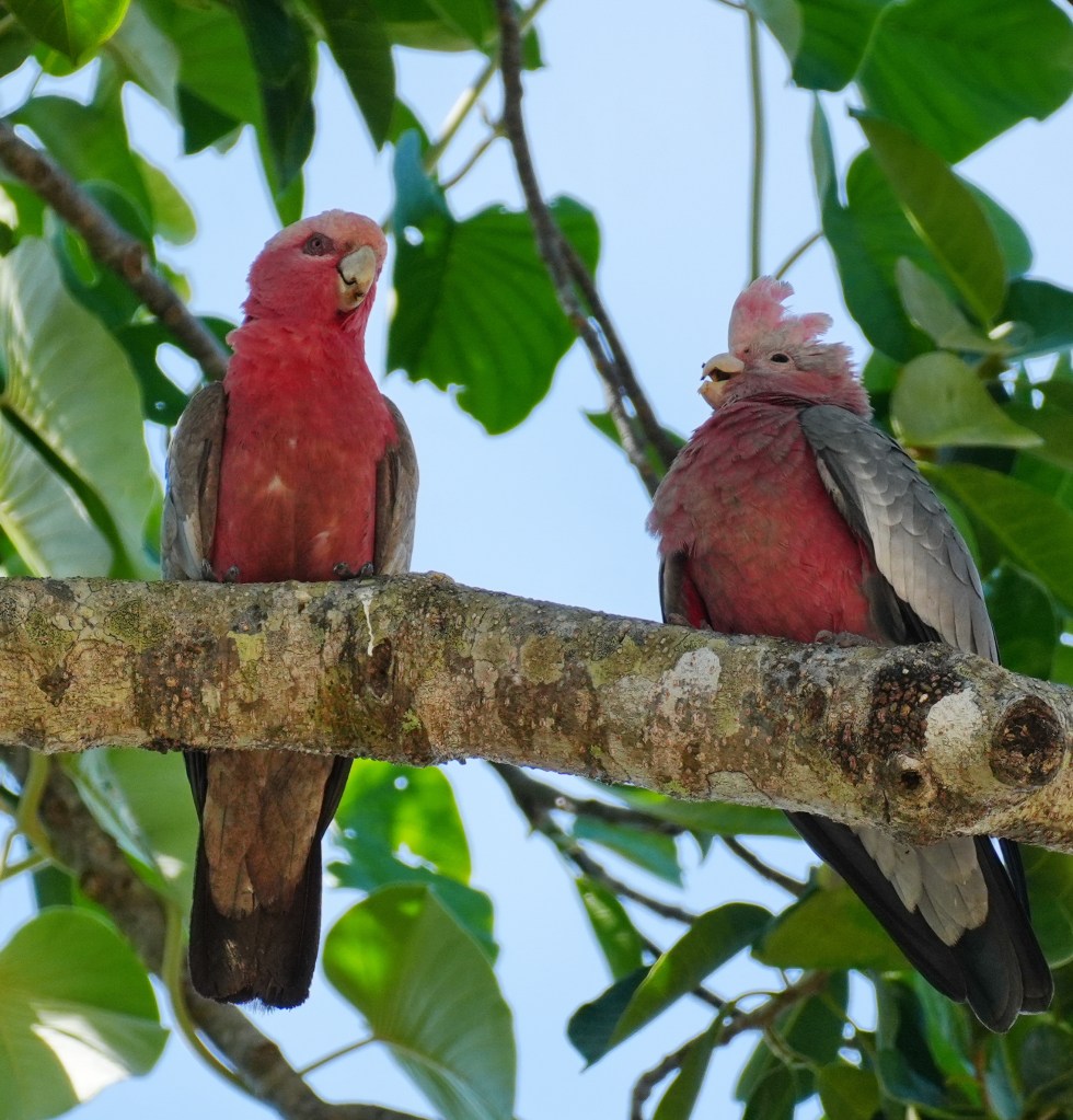 Several bird species had far northern subspecies of the ones in Sydney. These include the Galah which has a much richer pink colouring and a light pink cone. This adult is trying to cope with terrible begging cries of the juvenile. It sounded so sorrowful and just kept on calling. The northern subspecies of the Laughing Kookaburra is slightly smaller bird. We did not get to see the Blue-winged Kookaburra while there, it flew off each time.