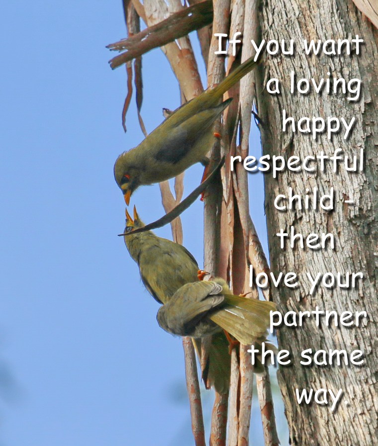 It takes much patience and skill to build a trustworthy nest that will stand up to wild weather. It takes even more patience and skill to raise a family. It is not a matter to just put a roof over their heads and feed, educate and shower with possessions. It takes the personal commitment of both parents working together in harmony and love with the same goals. If you want your children to grow up feeling secure and confident behaving affectionately and responsibly – model it in your love as parents to one another. Children feel and absorb emotions long before they understand what we say.