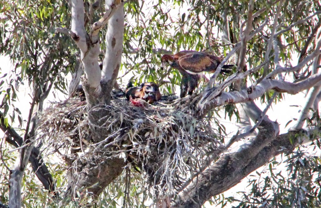 Many ducks and other shorebirds and ocean birds nest near their food source as do all birds as they need fresh water, easy digesting foods, and reasonable protection from the elements for their young. However, the term ‘sitting duck’ is well placed for many waterbirds that nest exposed in the open by the river or lake hey feed from and are subject to frequent threat of predation by raptors including Falcons, Harriers, Kites and Eagles and also Currawong, Butcherbird, Kingfisher and Kookaburra.