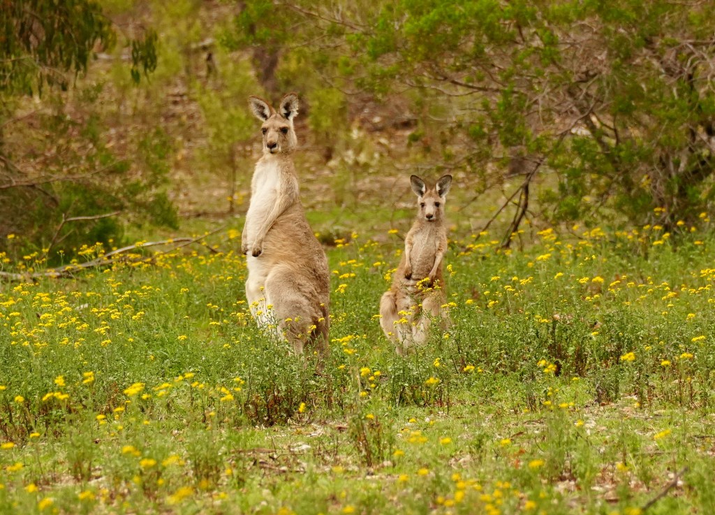 As we looked out from our room at Belle Bois we could watch the local Eastern Grey Kangaroo. I was chased by one male which was quite unusual. This was a beautiful peaceful vista at the backdrop of the valley walls. Kangaroos can hold off birthing till season is good, this is why we see so many young. Usually one boomer (alpha male) has a harem of several females.