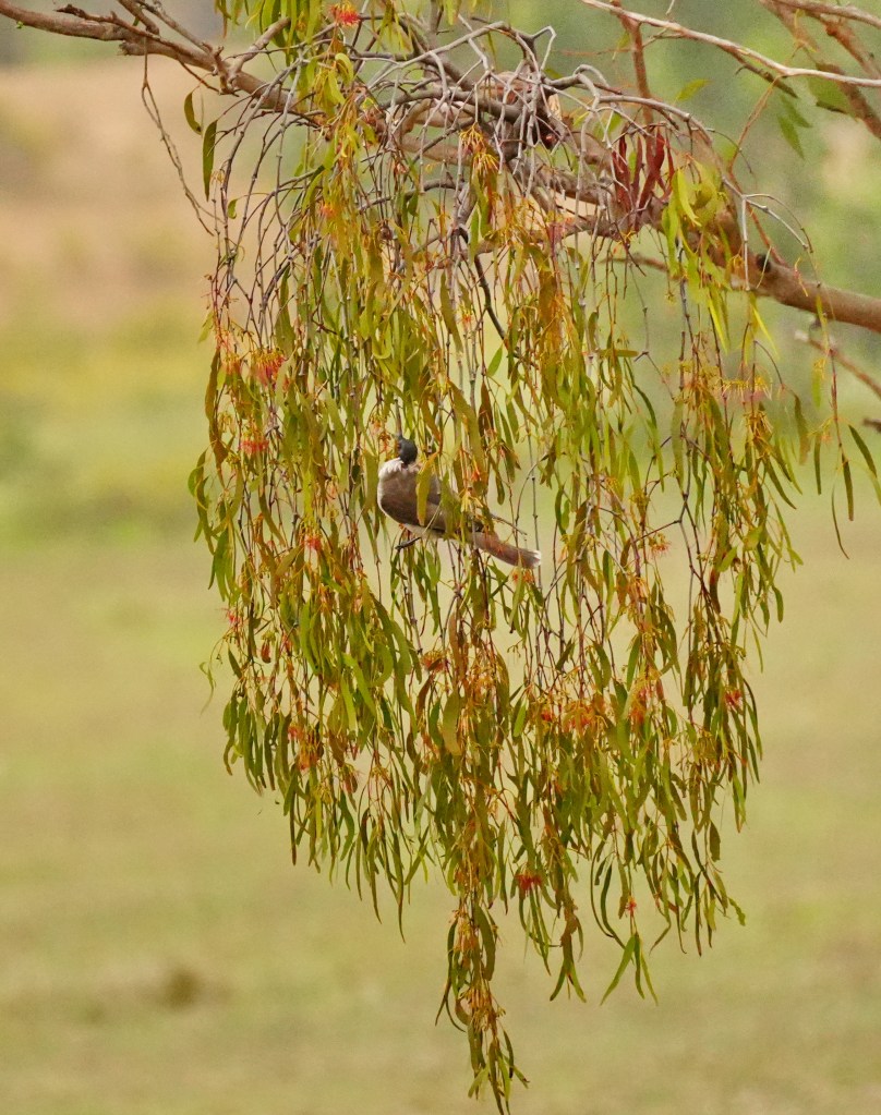 This time of year is not the best for birding here, and the weather was cloudy and wet so we were thankful for what we did see. The Noisy Friarbird and Noisy Miner were the most numerous and noisiest of the birds feeding in the the Mistletoe blossom (for nectar) and Ironbark trees (for lerps)