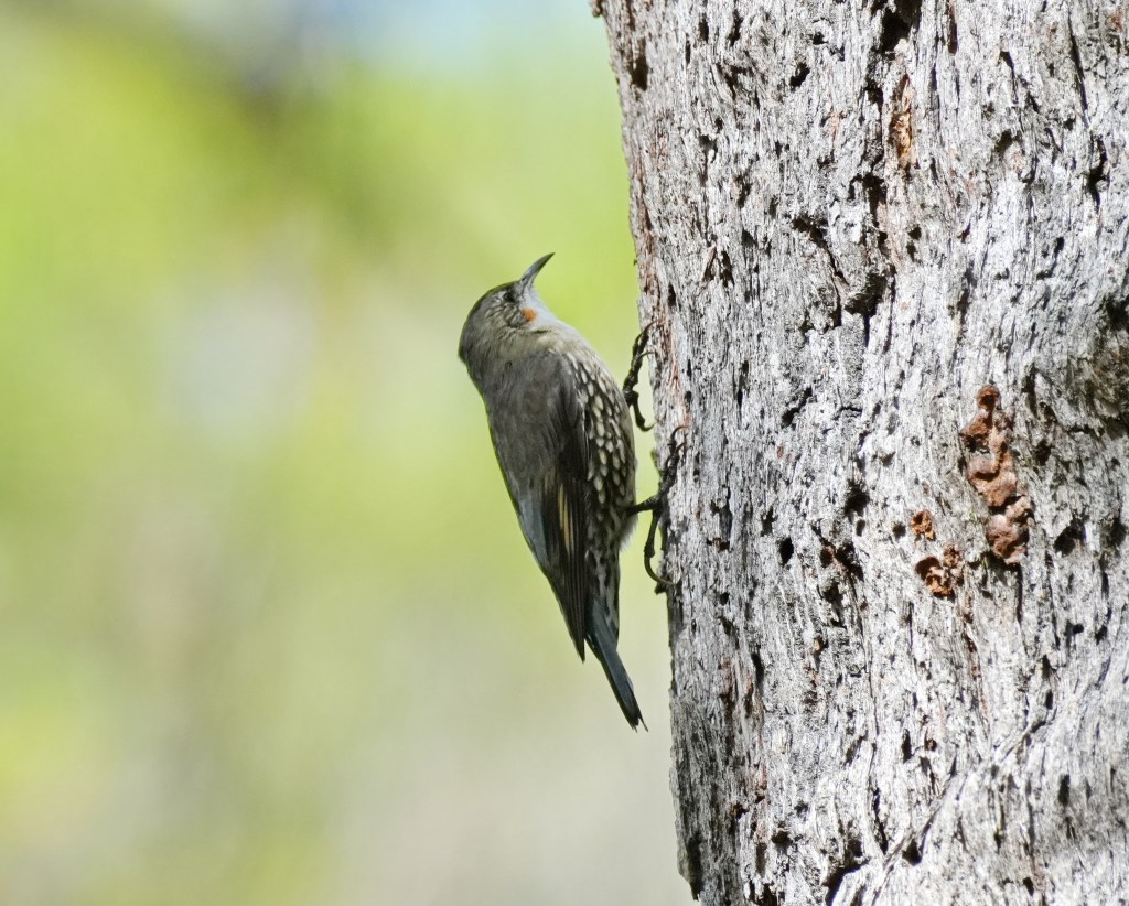 It was a plus for our friend to see this female White-throated Treecreeper climbing a Eucalypt, as she could hear them but they can be difficult to spot, especially since they prefer to climb to darker side of the tree trunk as they poke the bark for insects and grubs. When they reach the top of the tree they fly to the base of another nearby tree and commence the climb making their classic climbing call.