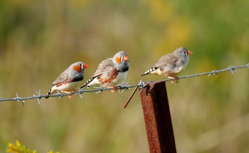 These amazing tiny seed eating birds get their name from their striped tails, and are amazing because they survive well in large flocks in some the driest, hottest most arid inland areas of Australia. One of the two sub species (Taeniopygia castanotis) is endemic to Australia and the other is found in Indonesia and East Timor. The miracle of this bird is that it survives on the most infinitesimal drop of water since much of its moisture comes from its food.