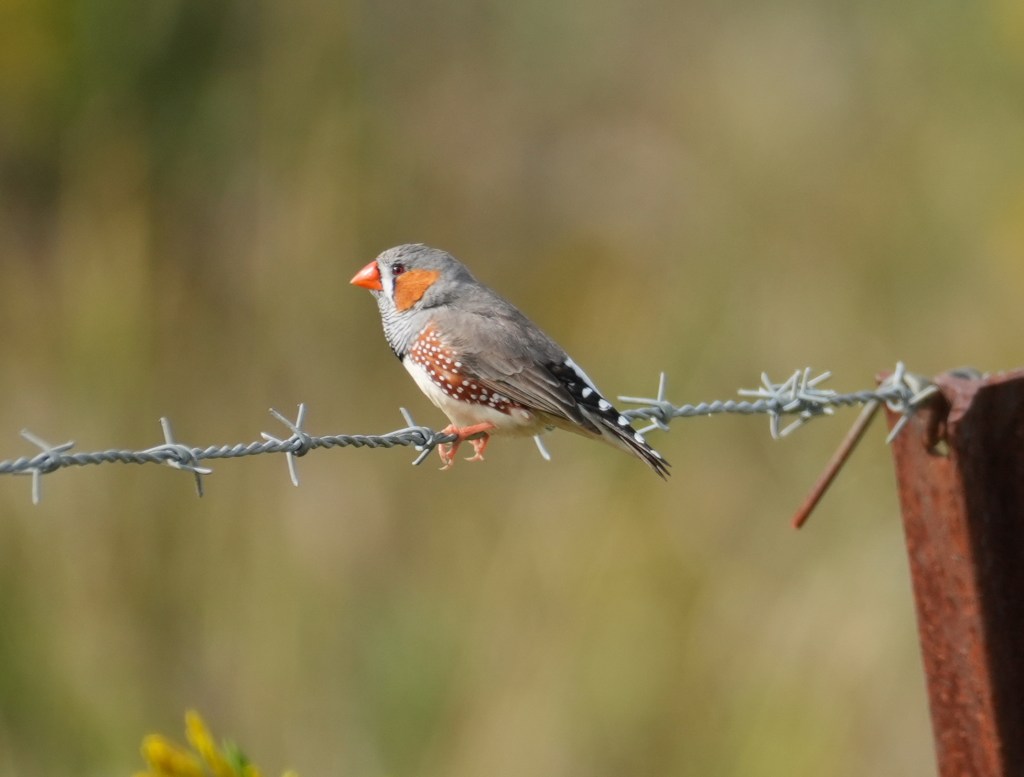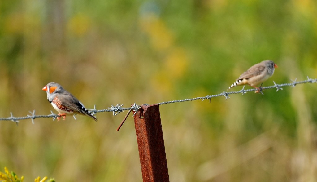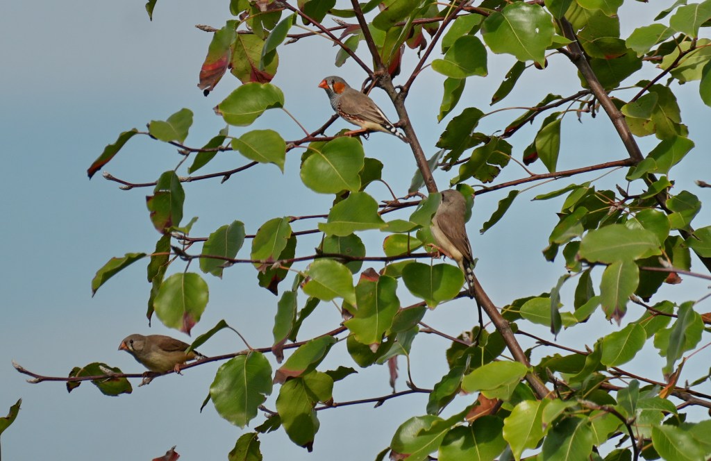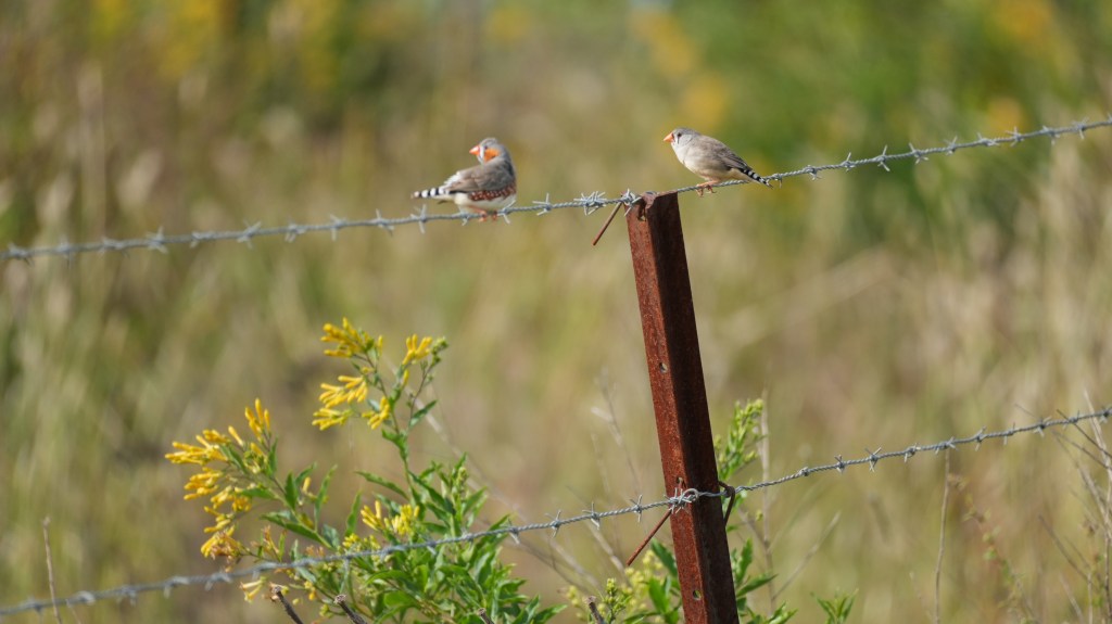 It is most enjoyable to experience a week of lovely mild sunny blue sky Autumn days, a change from the unseasonable weather on the past months. We have been told we are heading toward a year bringing drought, heatwaves and bushfires possibly worse than previous years. My wife and I decided to have a day out together so we headed to some old birding spots on the other side of Sydney. Bushell’s Lagoon was our first call. We were surprised to see so few birds which may be due to the rains and floods of past months. As we approached the Lagoon we were excited to site a family of Zebra Finch, the world’s most studied bird. They would fly and land back and forth from the fences of the horse paddocks. Click on image to enlarge.