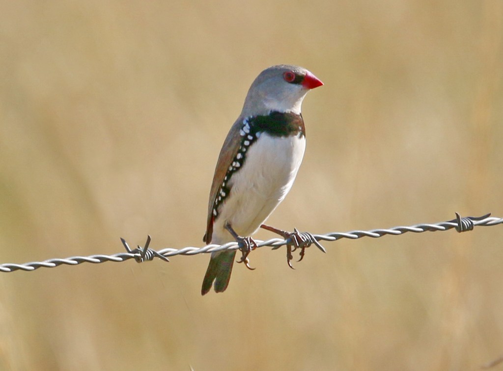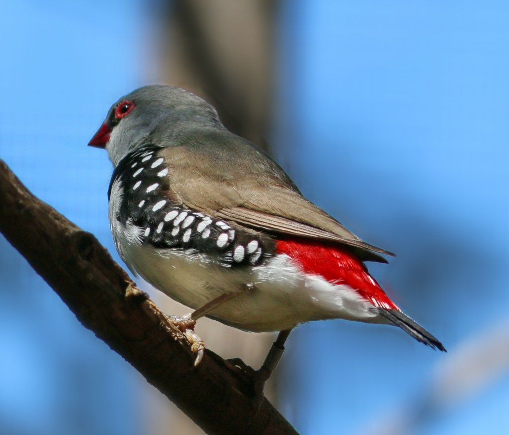 The Diamond Firetail is found mainly in a large part of both coastal and inland south eastern NSW, Victoria and parts of SA and southern Queensland. It gets its name from the white spots on the sides of its body.
