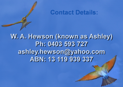 Ashley is aware, from his own childhood experiences, of the need to encourage and assist the healthy development of our young people in making wise life choices. He hosts a website and weekly blog which also complements his book and shares additional information. He is often asked to give talks on birding and Australian birds.